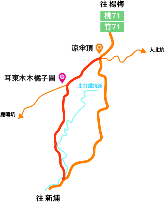 位於新埔鎮北打鐵坑山的面南山頭,全日照環境適合柑橘生長,因此果實甜美多汁。